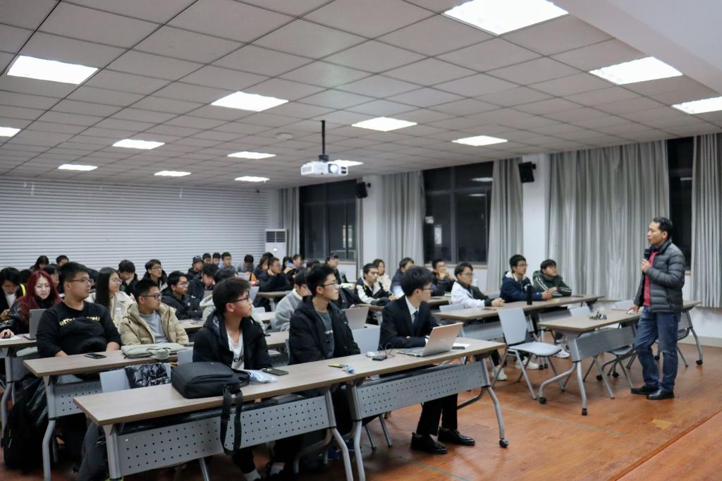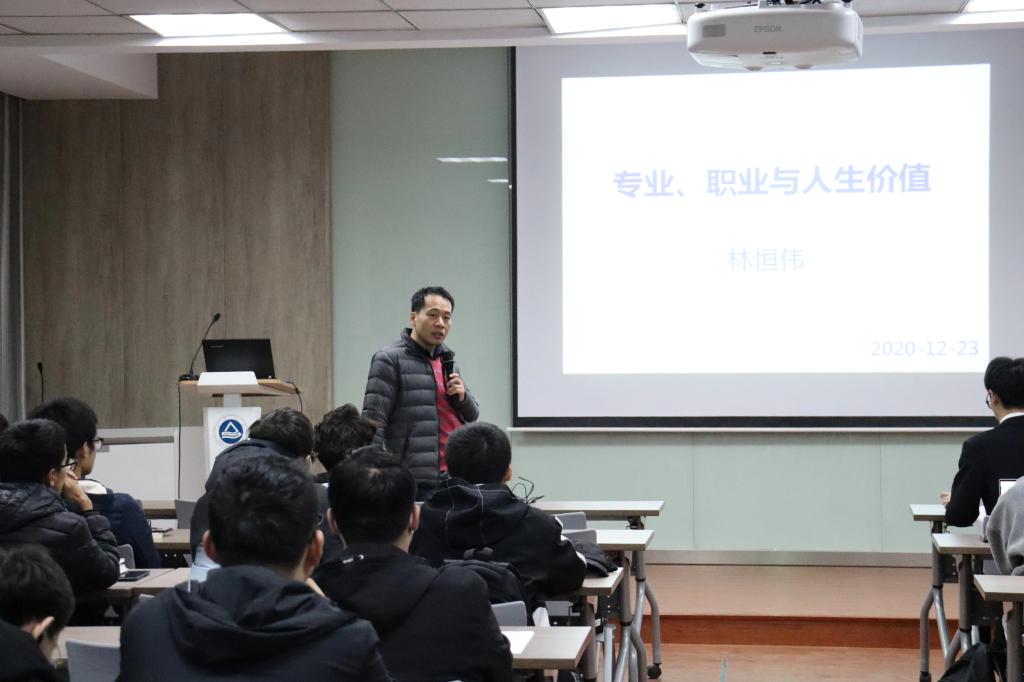 首先,林恒伟教授简单分享了自己的求学和工作经历,以亲切的口吻拉近了与同学们间的距离。考虑到现场大多为本科生,林教授从专业与职业的选择等同学们感兴趣的话题出发,针对同学们在接触新专业时可能遇到的困惑,提出了自身看法与解决措施。随后,林教授为大家剖析了大学与中学的不同之处,他强调大学阶段的学习是自主性学习,同学们需要习惯不同教学风格的老师,形成一套适合自己的学习体系;同时,大学教育不单是传授专业知识,更注重修养德行,对此林教授提出“三个能力,一个精神”,即提倡同学们主动培养自学、交流、组织能力,并在学习中养成一种团队精神。