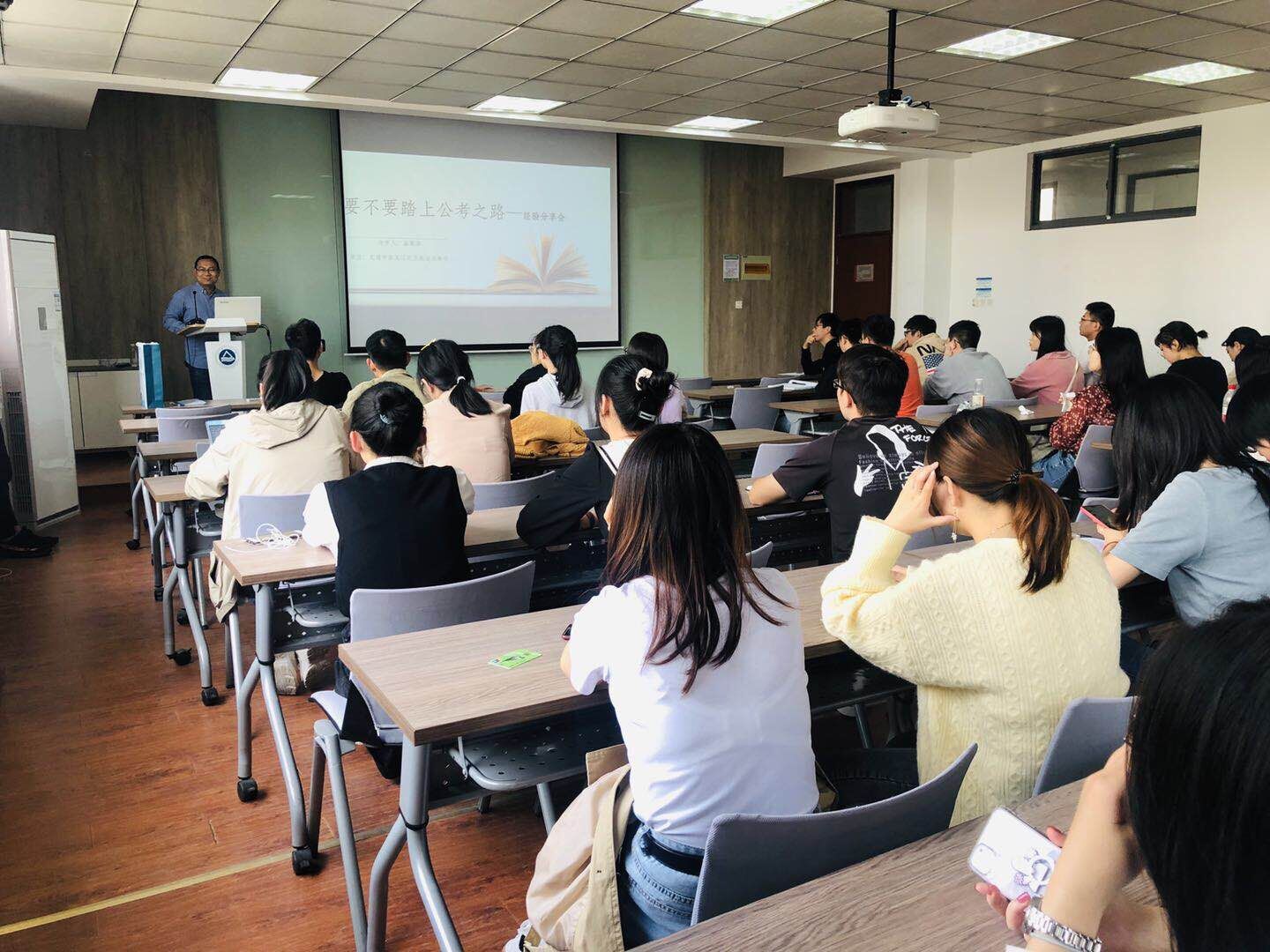 在化工楼A316成功举办了“要不要踏上公考之路”主题讲座。此次讲座由2019届毕业生曲寒洛为大家进行经验分享,学院分团委书记任增亮老师及学院2019级、2018级研究生40余人参加。